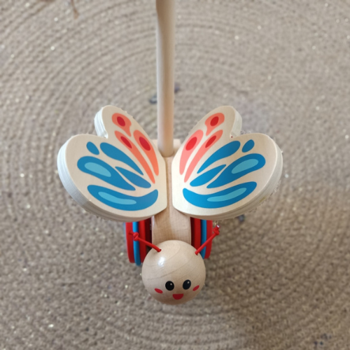 Une légère poussée ou traction fait battre les ailes de ce papillon à mesure que votre mini marche.